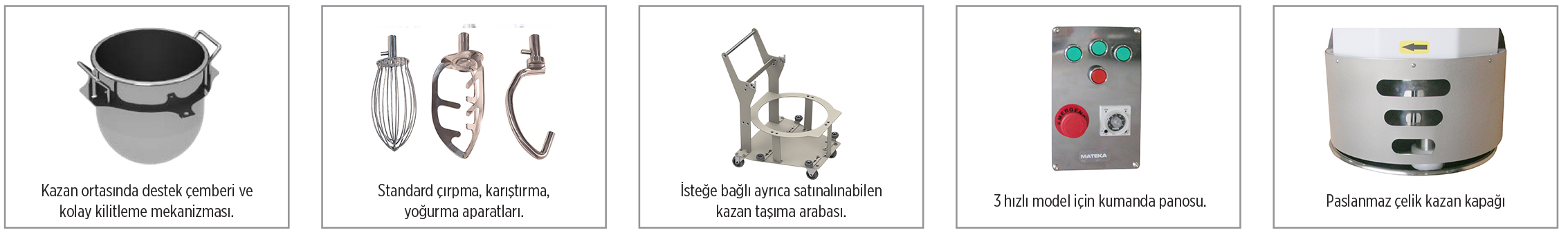 | Kod | Model | Ürün Adı | Kazan Ölçüsü | Motor Gücü | Ölçüler ve Ağırlık |